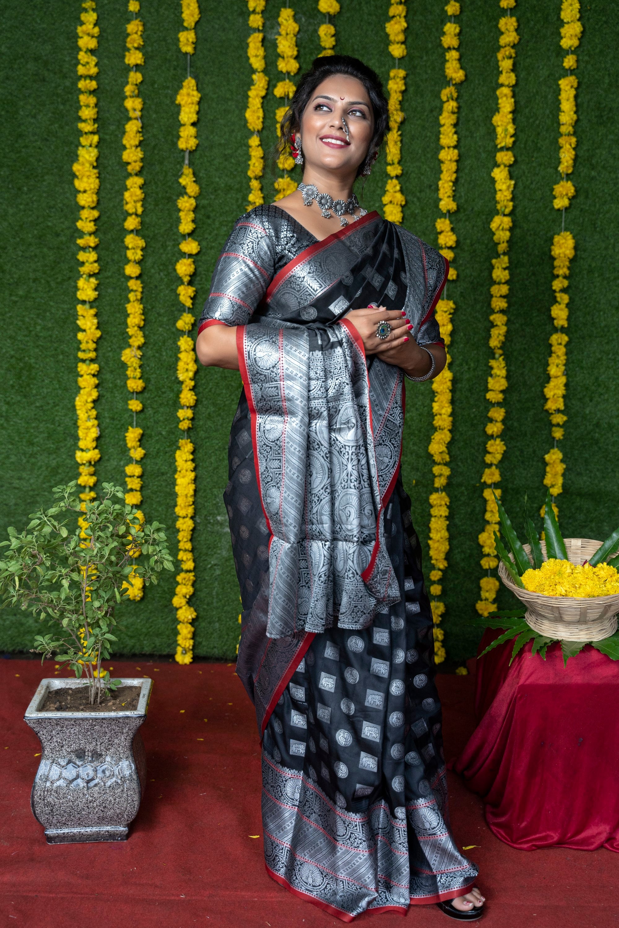 7. Don’t store the saree in a plastic cover as this will cause the gold embroidery to turn black.