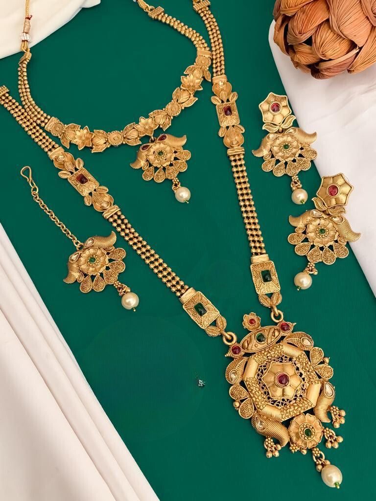 Fancy Rajwadi Gold Plated Combo Set With Mang Tikka