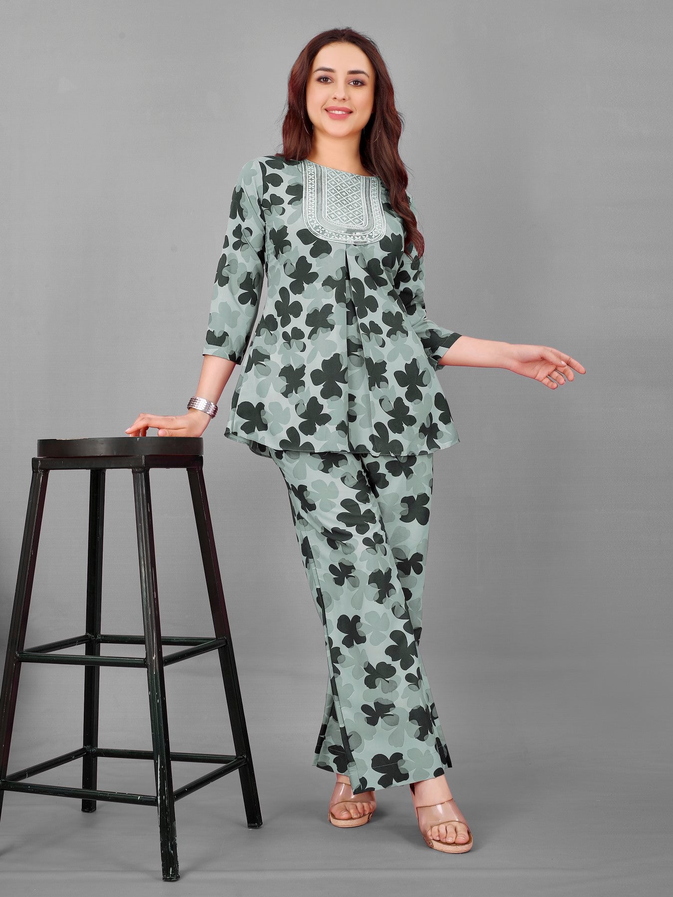 Pink Floral Print Top And Plazzo SetBlue Floral Print Top And Plazzo Set