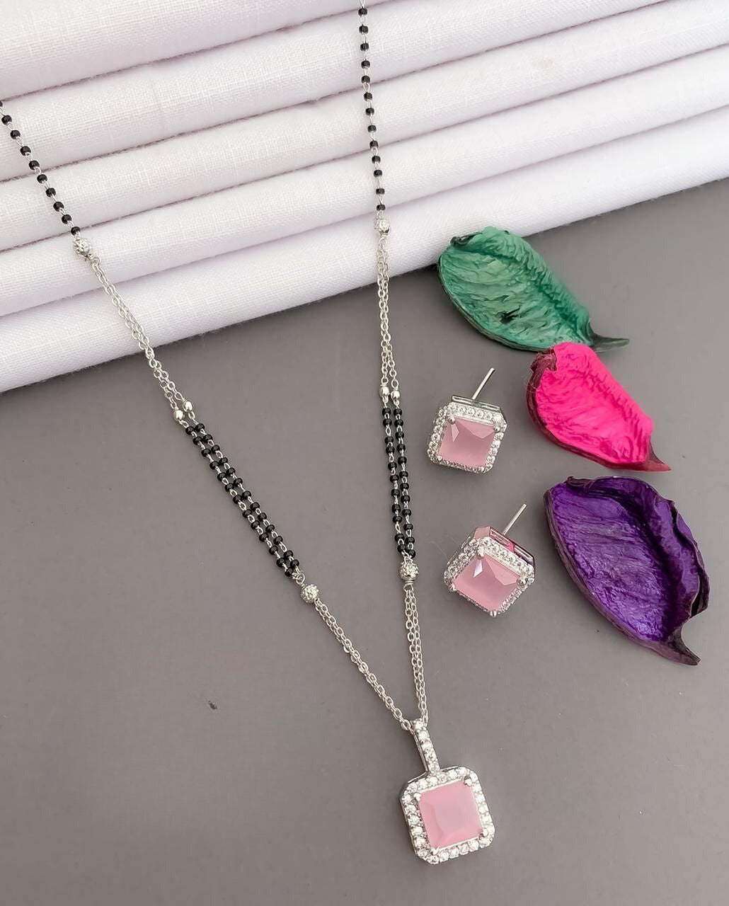 Premium American Diamond Stone Studded Mangalsutra With Earrings