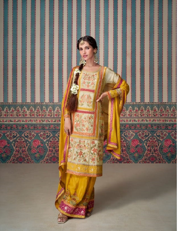 *Plazo Work*-Embroidery 5 Colour Dhaga + Jari,Sequence Work [Front-Back Side Full Work]