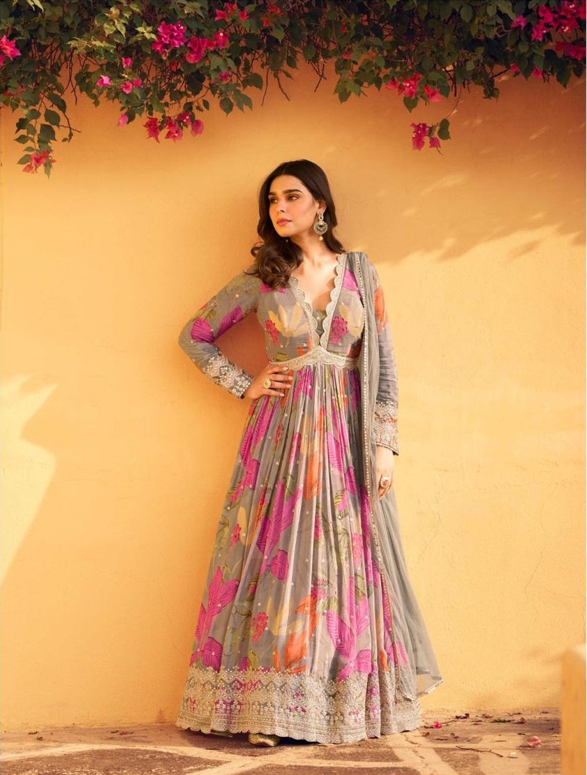 *Top:- - REAL CHINON SILK ( HEAVY LOOK FRONT AND BACK EMBROIDERED)*